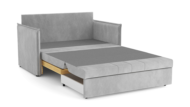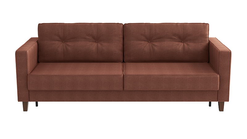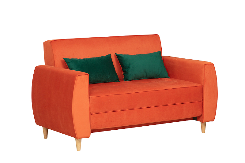 Заказала этот диван в изумрудном цвете. Понравилась его форма – строгая и в то же время необычная. Диван не громоздкий, занимает немного места как в сложенном, так и в разложенном положении. Раскладывается легко. Ткань плотная, качественная и приятная на ощупь.