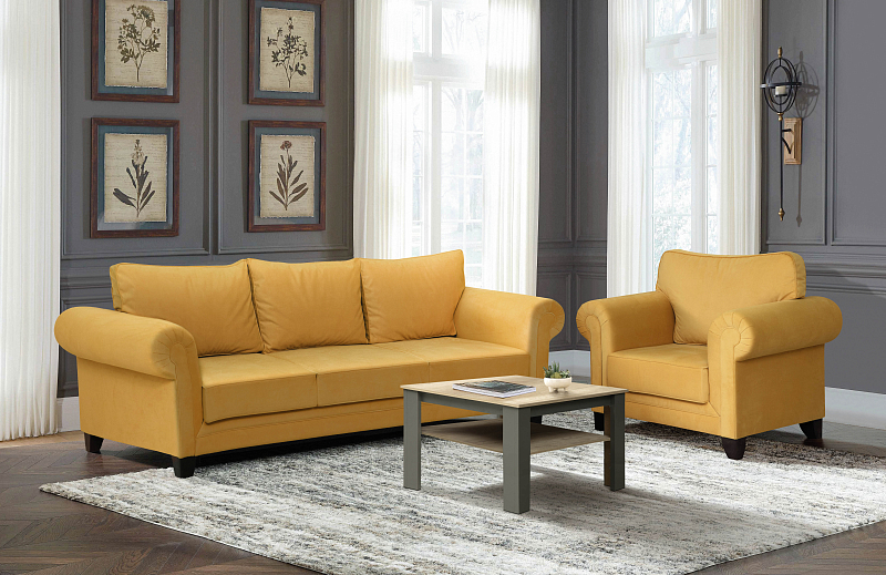 Как вписать горчичный диван в интерьер гостиной