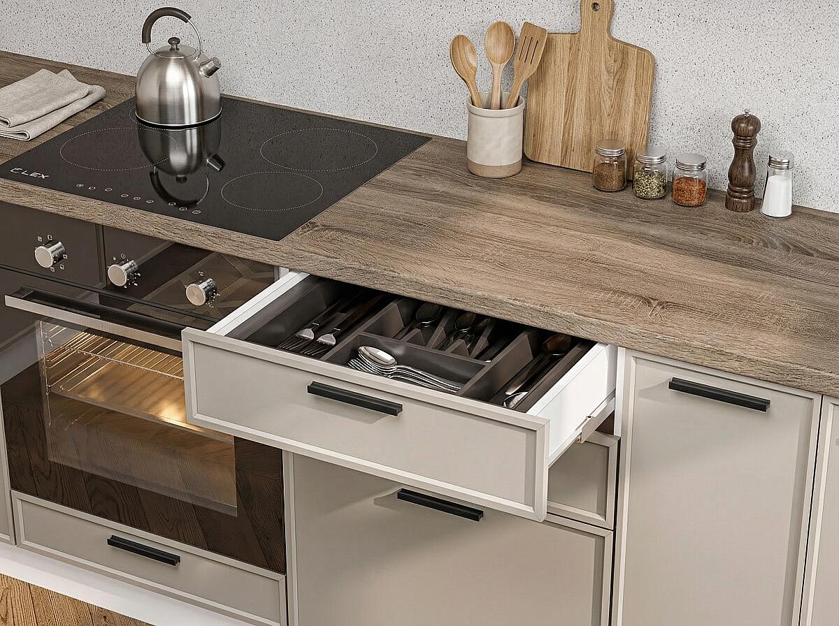 На выбор покупателя влияет конфигурация помещения, целевое назначение, общая площадь. Производитель предусмотрел вариант посекционного приобретения изделий с разными показателями глубины (диапазон 350 — 480 мм).