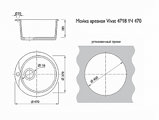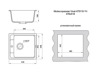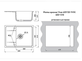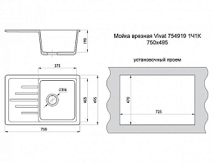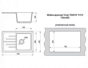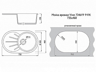 Мойка врезная Vivat 775016/0,6 1Ч1К (правая)