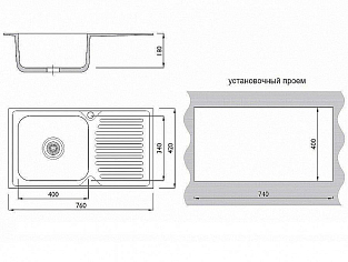 Мойка врезная 764218/0,6 1Ч1К (правая)