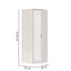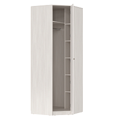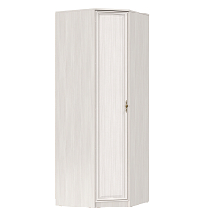 Модель шкафа углового заинтересовала нестандартной конструкцией и цветовой комбинацией, несмотря на одну дверь, им очень удобно пользоваться. Изделие в комнате занимает минимум места, но размещает много вещей. На дверце красивый резной декор.